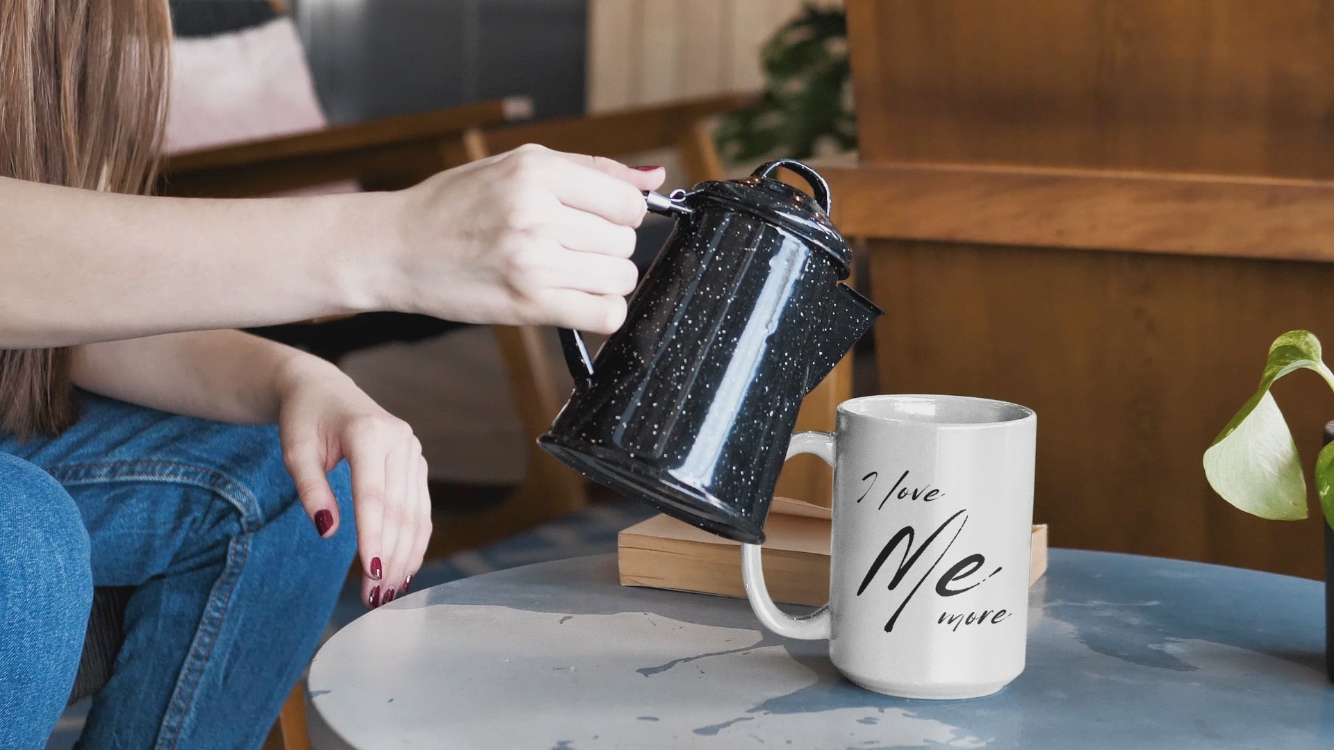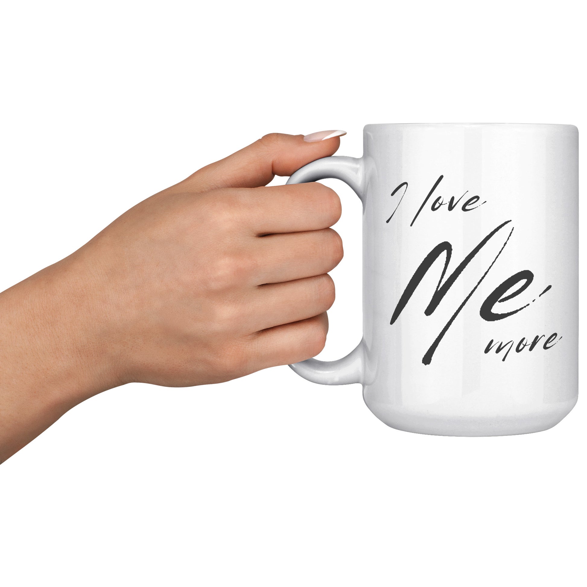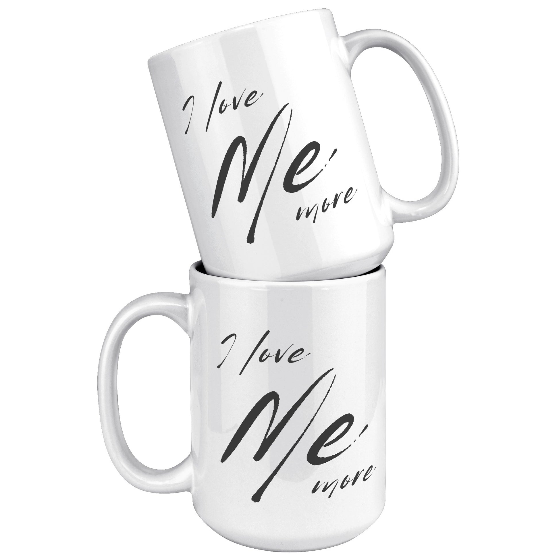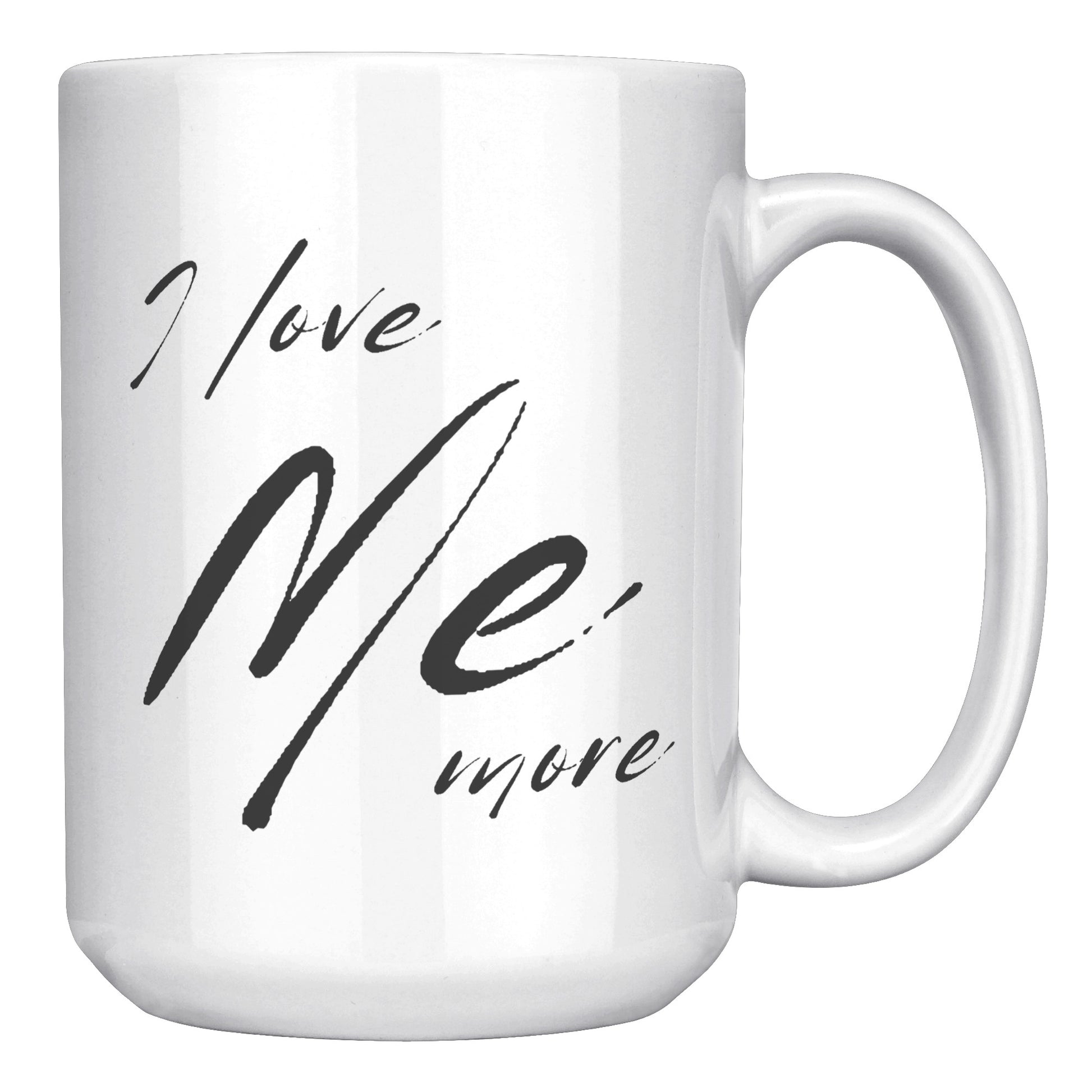 Introducing our 15 oz white mug with the empowering message "I love me more." This mug serves as a great reminder to prioritize yourself and your own well-being.